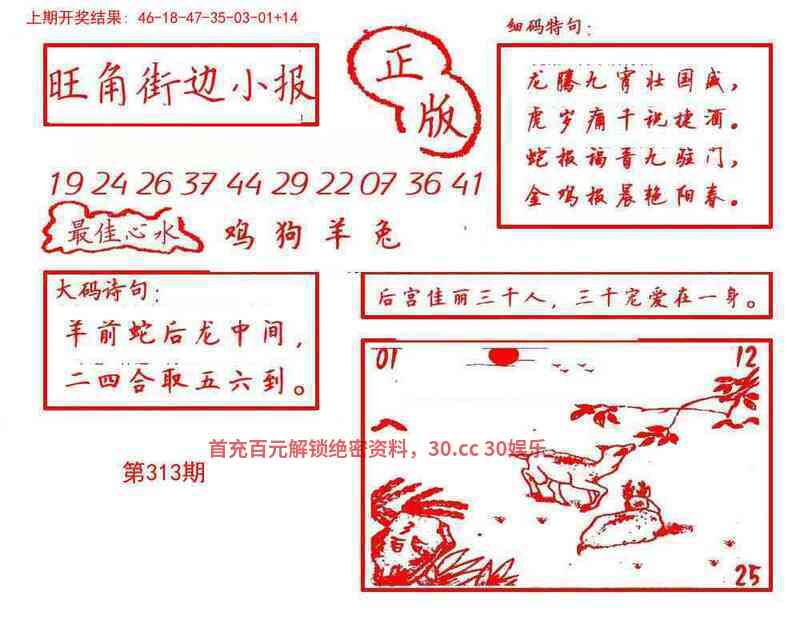 | 313期 | 虎 | 蓝波双 | 7尾 | 开龙38 |
