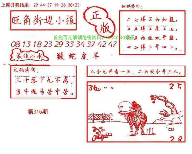 | 315期 | 羊 | 蓝波单 | 9尾 | 开虎04 |
